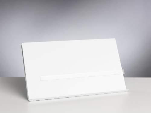 Extra bred koncepthållare som klarar A3-format. Vitlackerad. Steglöst vinklingsbar. Med transparentmagnetlinjal. Mått platta: B-422, D-247 mm.