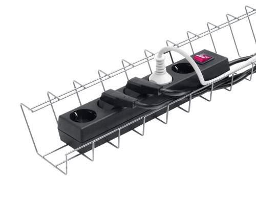 Svartlackerad trådkabelkorg med gott om plats för kablar och grendosor.