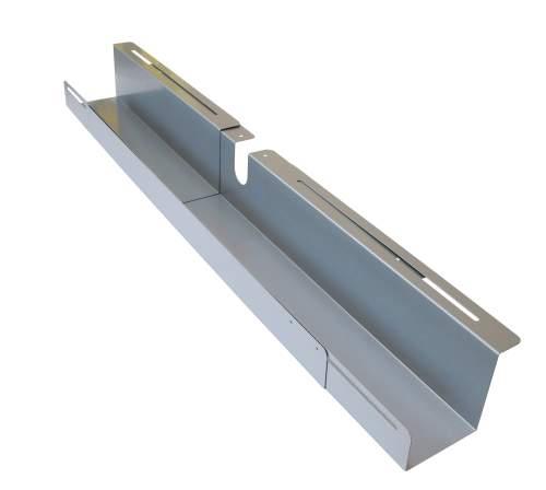 Kabelkorg i silverfärgad plåt, för montering under bordsskiva. Kabelkorgen är ställbar i breddled 780-1500 mm, den glider lätt och ställbareheten påverkar inte enkelheten i monteringen. Passar de flesta bord både på kort- och långsidor. De tre delarna kan även användas som tre separata kabelkorgar om man vill. Tillverkad av endast ett material, plåt.